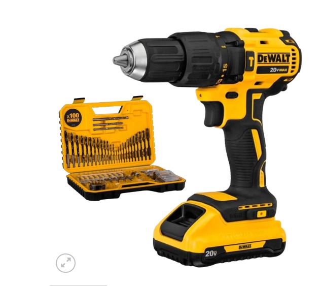 TALADRO PERCUTOR IN 1/2″ + ACC 100 PZ BROCAS PUNTAS+2 BAT+CAR DCD7781S2A